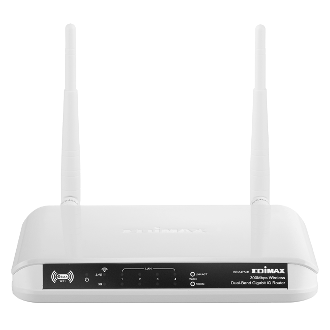 The Edimax BR-6475nD iQ router provides simultaneous 2.4GHz and 5GHz wireless network connectivity for maximum flexibility of use. This router allows users to use general network applications like web surfing via the 2.4GHz bandwidth and stream HD video and other media through the 5GHz bandwidth at the same time. Additionally, the BR-6475nD iQ router features 1 gigabit WAN port and 4 gigabit LAN ports, offering users with the need for maximum network performance data rates of up to a staggering 1000Mbps. With gigabit Ethernet connectivity, the BR-6475nD can provide users a fast and smooth media streaming or network gaming experience.