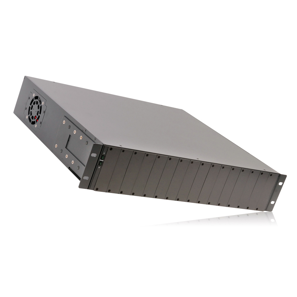 Up to sixteen media converters can be powered by the Converter chassis without requiring external power supplies.