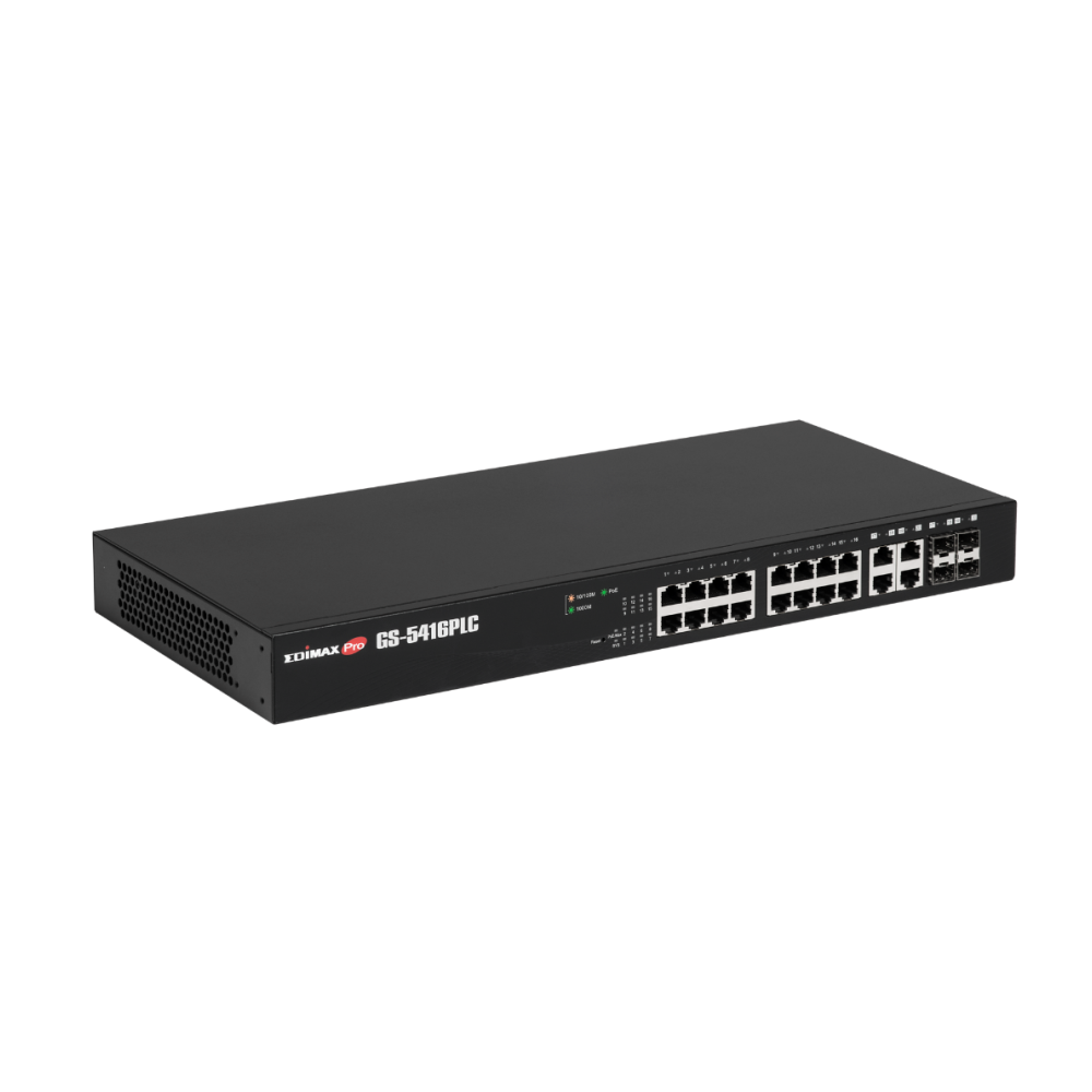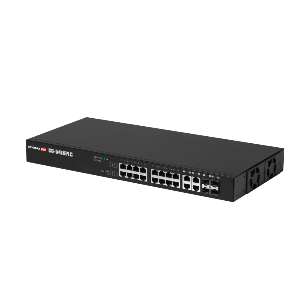 Complies with IEEE802.3/802.3u/802.3ab/802.3z Gigabit Ethernet Standards, the GS-5416PLC features 16 Gigabit Ethernet ports for high-speed, large file transfer and 4 SFP slots for long range optical fiber Gigabit Ethernet connections.