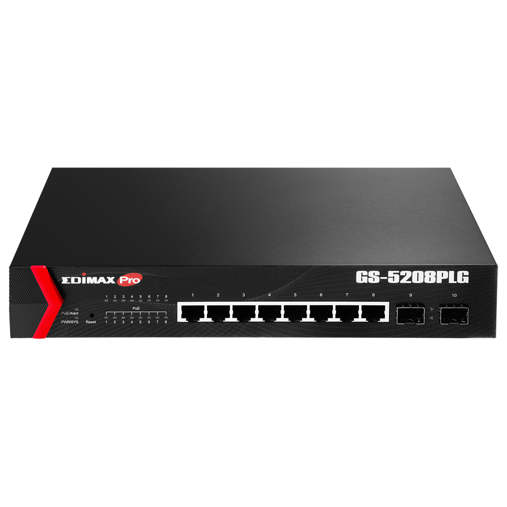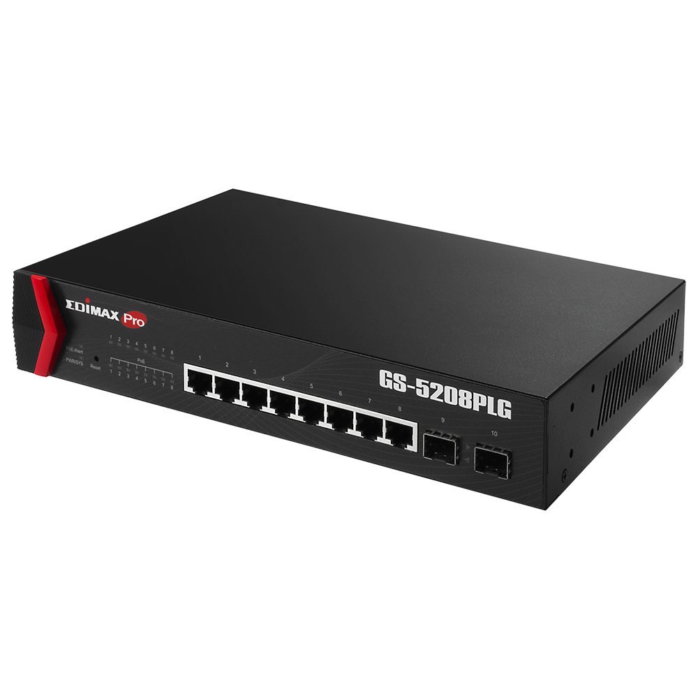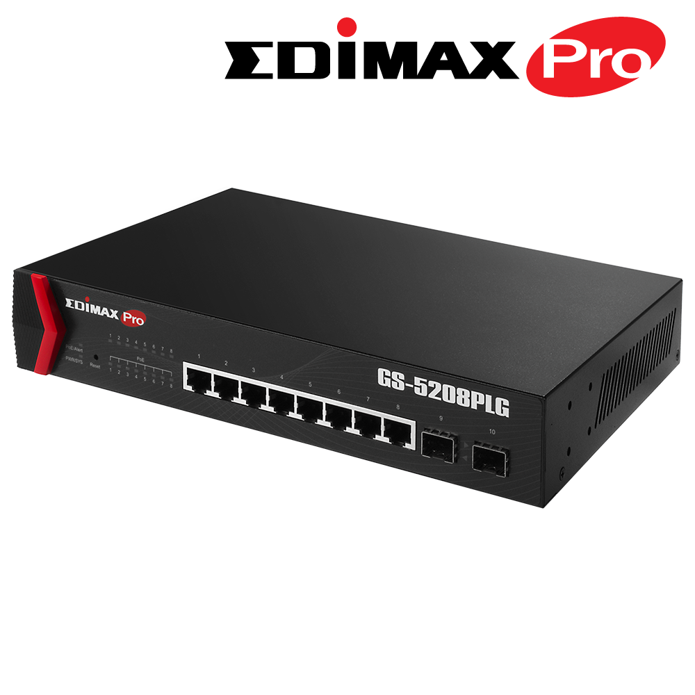 The Edimax Pro GS-5208PLG is a web-smart switch with 8 Gigabit PoE+ and 2 Gigabit SFP slots. Designed for medium to small network environments, its standard 19-inch 1U rack-mount brackets allow for integration with the most widely used mounting systems on the market. The Edimax GS-5208PLG is a superb choice to boost your network environment’s performance and efficiency.