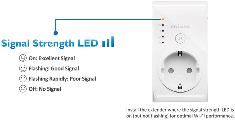 Extender EW-7438PTn je vybavený diodou signalizující úroveň síly signálu, to vám umožní najít nejvhodnější umístění s optimálním pokrytím.