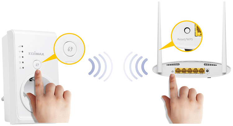 Díky zabudovanému tlačítku WPS (Wi-Fi Protected Setup) můžete rychle a snadno připojit EW-7438PTn přpojit k existující bezdrátové síti. Stačí stisknout tlačítko WPS na zařízení a na routeru.