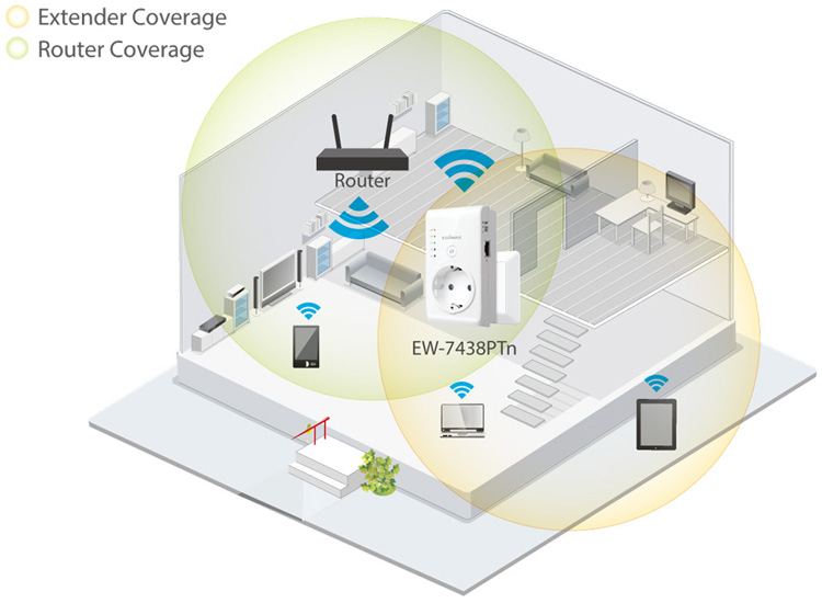 EW-7438PTn umožňuje jednoduše zlepšit signál i kvalitu bezdrátové sítě u vás doma nebo v kanceláři a zároveň eliminovat "mrtvé body". Stačí zařízení připojit do elektrické zásuvky a během pár chvil bude připraveno k práci.