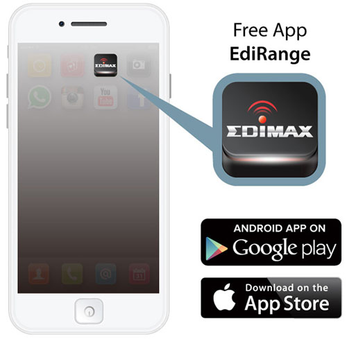 Pro konfiguraci a správu EW-7438PTn můžete použít EdiRange, aplikaci pro smartphony. Nabízí přehledný seznam okolních bezdrátových sítí spolu s jejich sílou signál, díky tomu je možý výběr nejméně zarušeného kanálu. Pomocí aplikace můžete konfigurovat také plán WiFi nebo síť pro hosty.
