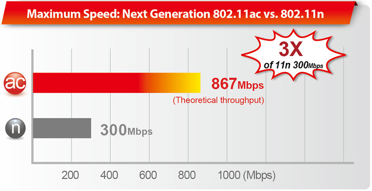 Adaptér EW-7811USC je v souladu s bezdrátovým standardem 802.11ac a také kompatibilní se standardy 802.11a/b/g/n, to umožňuje připojení s bezdrátovými zařízeními v pásmu 2.4GHz s rychlostí až 150Mb/s nebo v pásmu 5GHz rychlostí až 867Mb/s.